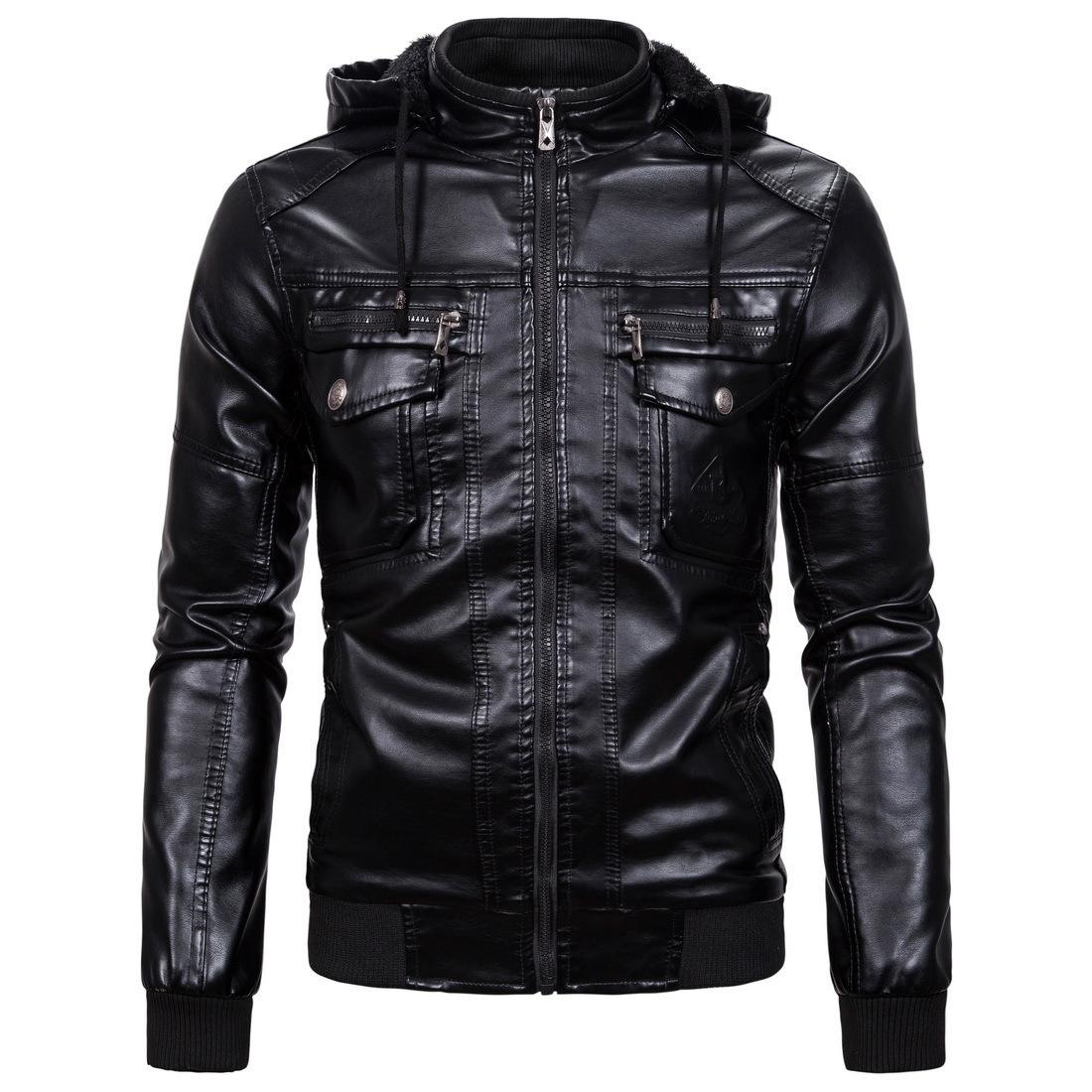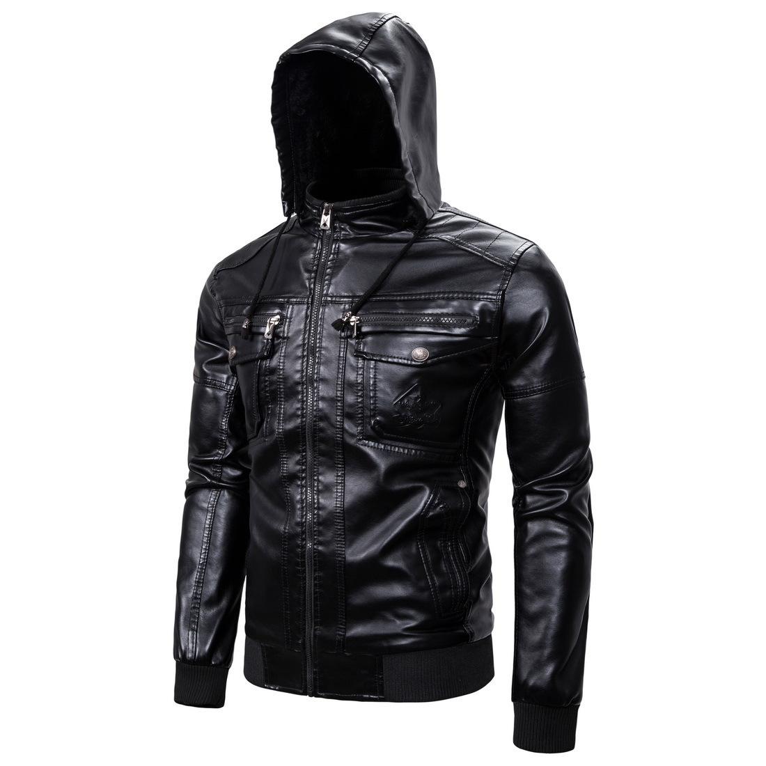 欧美冬装连帽加绒皮衣男士加厚PU皮外套青年休闲大码机车皮夹克男 |