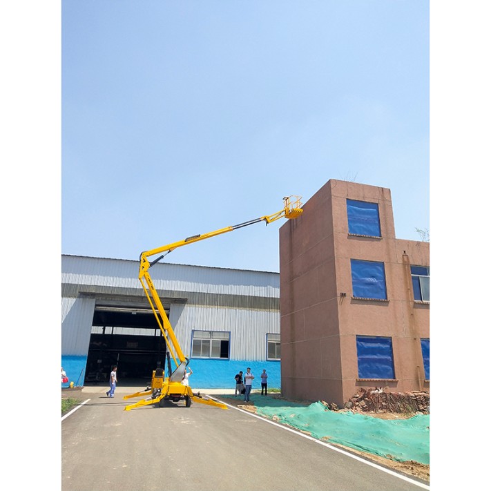 折臂式高空作业车广泛适用于市政、电力、路灯、广告、通讯、摄影、园林、交通、码头、机场港口、大型工矿企业等行业的安装维修及登高作业。适用于野外各种崎岖地形,空间作业范围广,主要用于建筑,桥梁建设、船舶制造、机场、矿山、港口码头、通信和电力设施的施工及户外广告的工程机械设备。柴油折臂式升降机:不用外接电源,适合野外高空架设作业,用柴油机动力驱动行走及升降,动力大,行走速度快。拖车折臂式升降机:可以挂在汽车上,与汽车同步,适合野外高空作业。 |