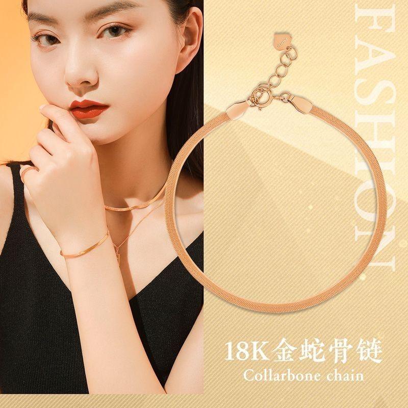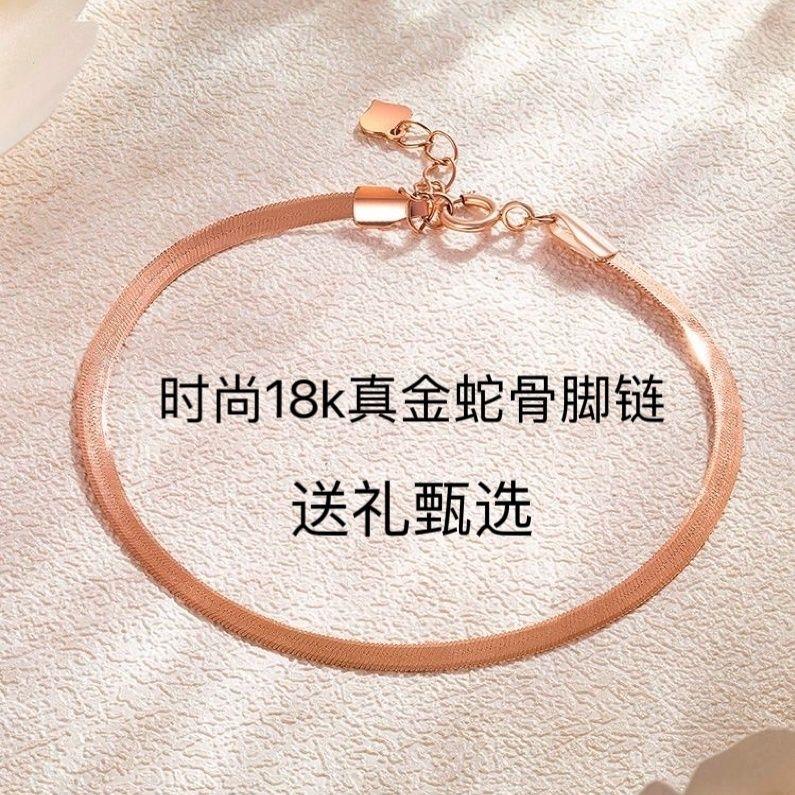 18k玫瑰金精素金刀片链脚链简约素圈金蛇骨足链女友情人节物