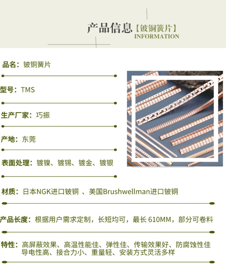 材质:日本NGK进口铍铜 美国Brushwellman进口铍铜|表面:可镀镍,可镀锡,可镀银,可镀金|长度:可根据客户要求长短均可,部分可生产卷料