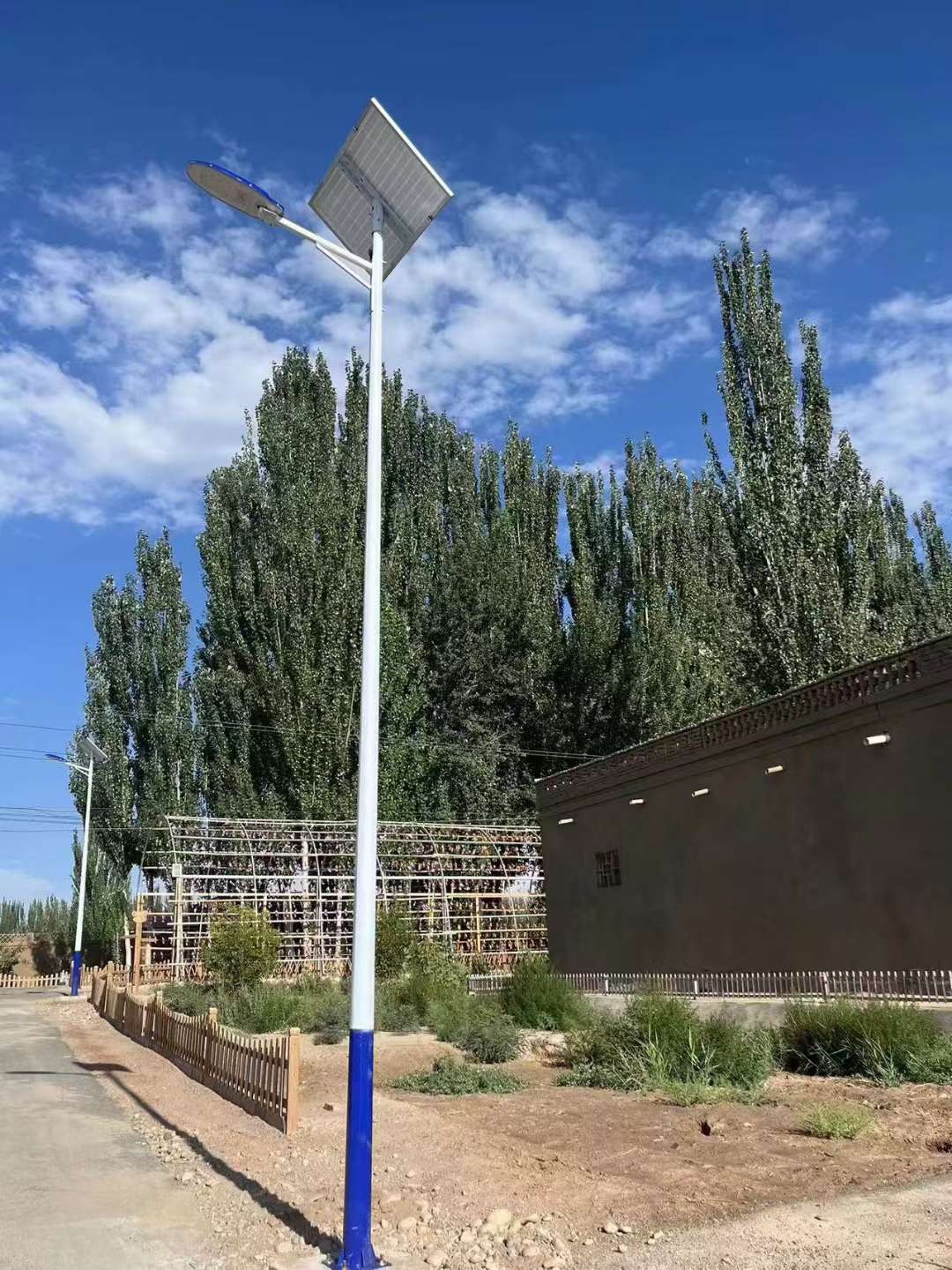 常规6米蓝白杆,市电太阳能路灯都可以,欢迎带图和参数定制,有实体工厂,欢迎参观指
