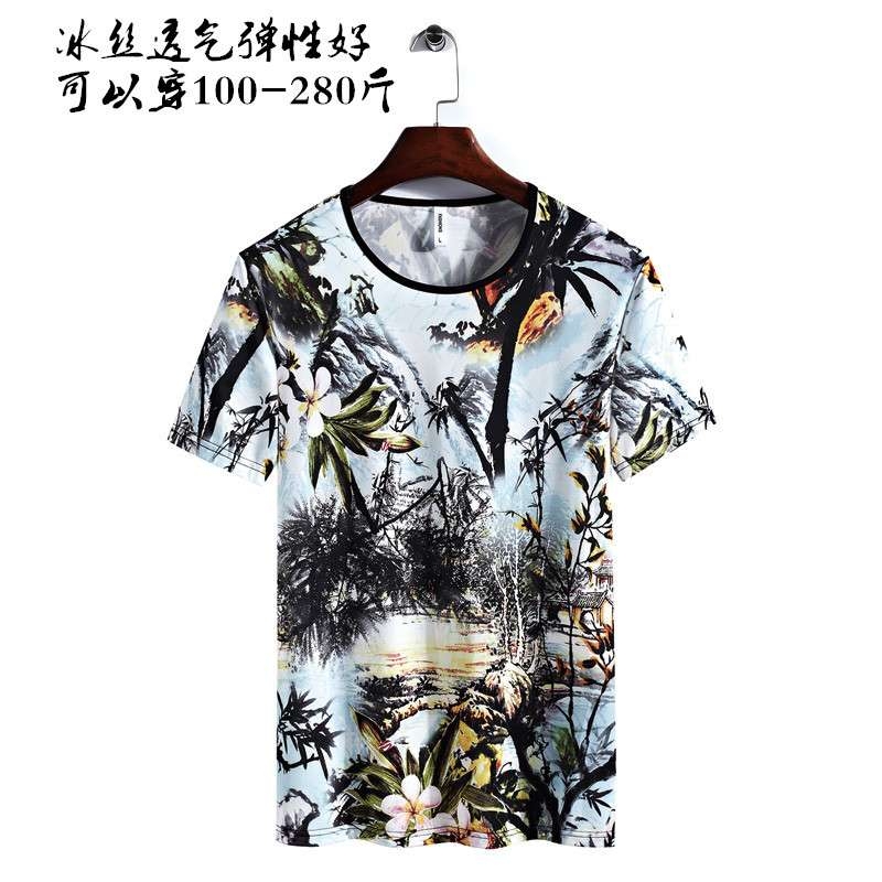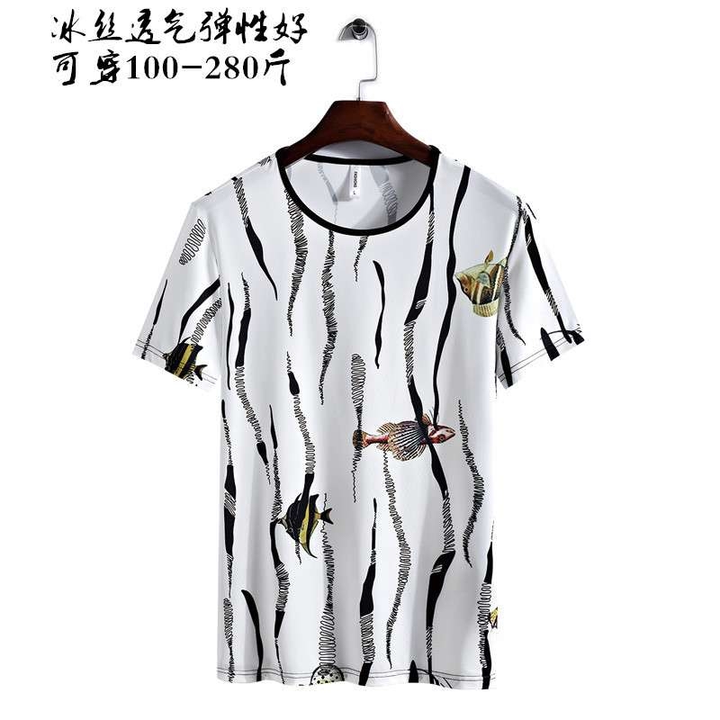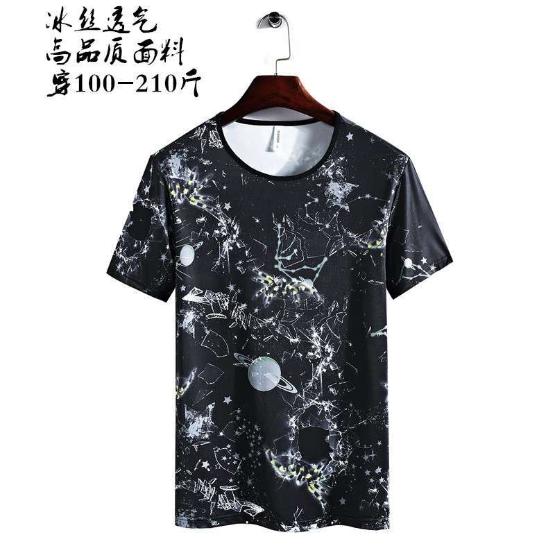 一件代发夏季男士冰丝短袖T恤打底衫修身弹力半袖上衣加大码8XL