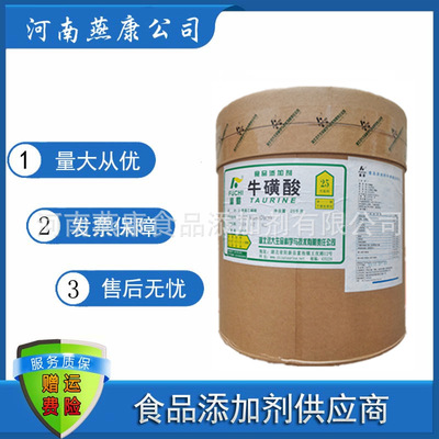 货源类别产地:国产|是否进口:否|型号:食品级|货号:1010|主要营养成分:牛磺酸(氨基乙磺酸)|品牌:燕康|外观:白色结晶或结晶性粉末|含量:99(%)|有效物质含量:99(%)|产品规格:1kg|保质期:2年|主要用途:酸味剂|食品添加剂生产许可证号:SC20142022200019|产品名称:牛磺酸。