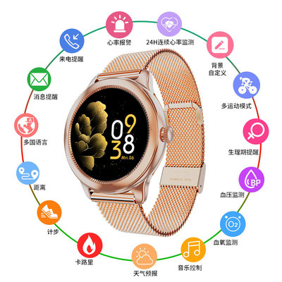 跨境新款B8P全圆屏女性手环心率血压监测生理期提醒运动智能手表 |